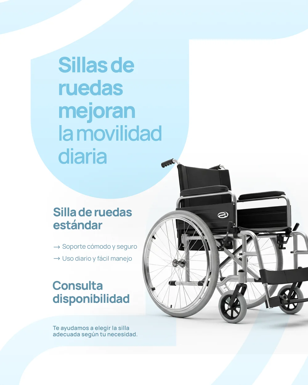 Contamos con sillas de ruedas funcionales y cómodas, diseñadas para brindar soporte, seguridad y mayor independencia.